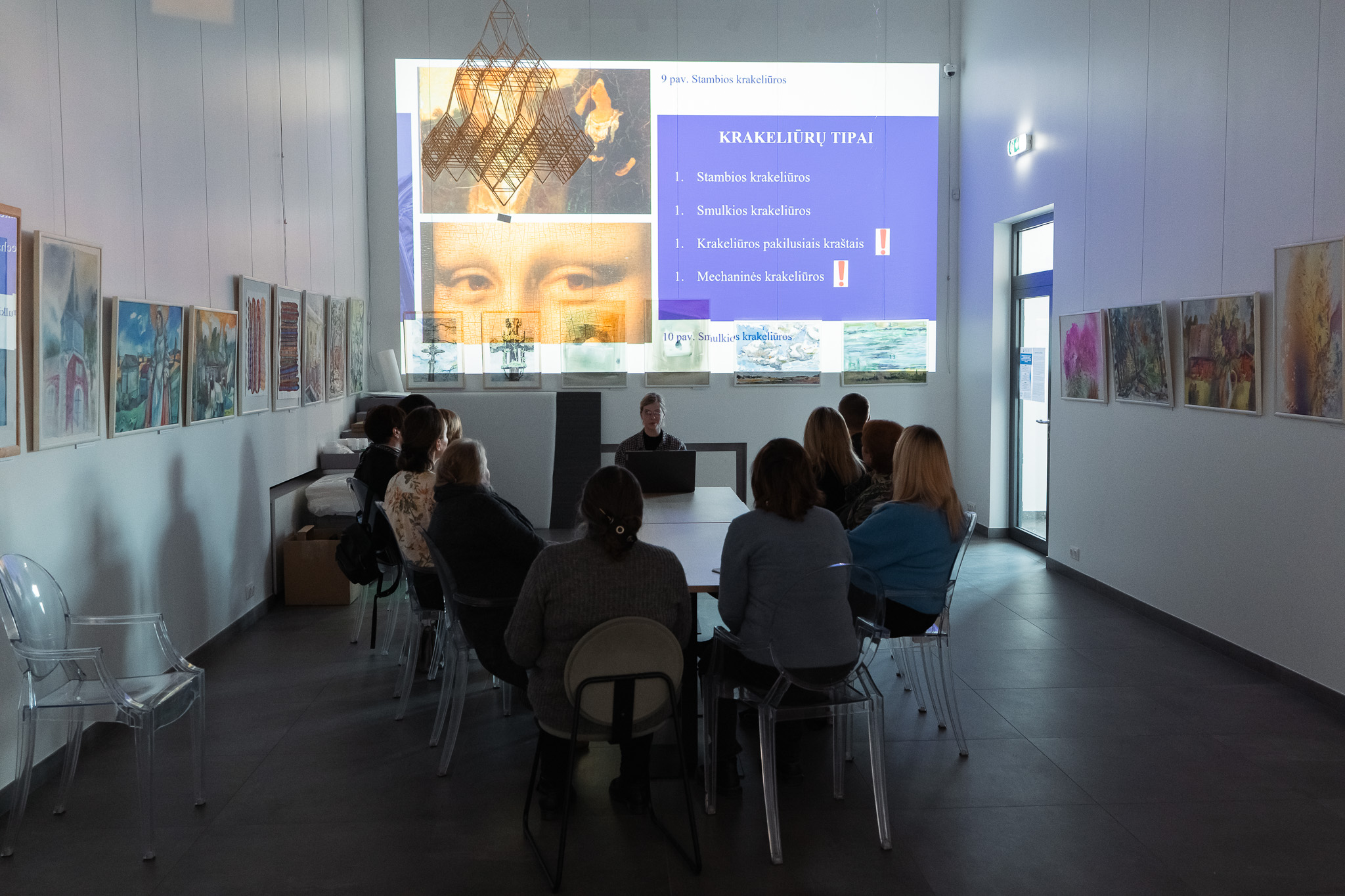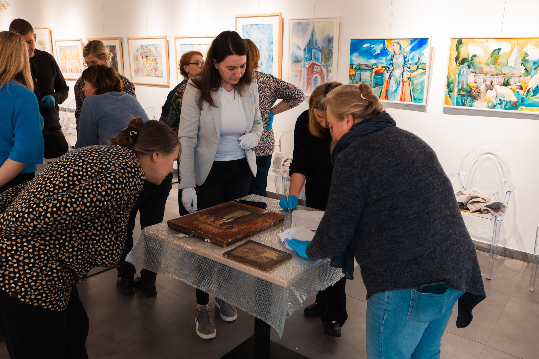 Vėlesnėmis dienomis prie mokymų prisijungė tapybos ir istorinių rėmų restauravimo specialistės – Silvija Lukošienė ir Aistė Eitutytė, II kvalifikacinės kategorijos molbertinės tapybos restauratorės. Šių užsiėmimų metu dalyviai susipažino su paveikslų paviršių priežiūra, saugiu transportavimu, laikymo sąlygomis bei rėmų konservavimo ypatumais.